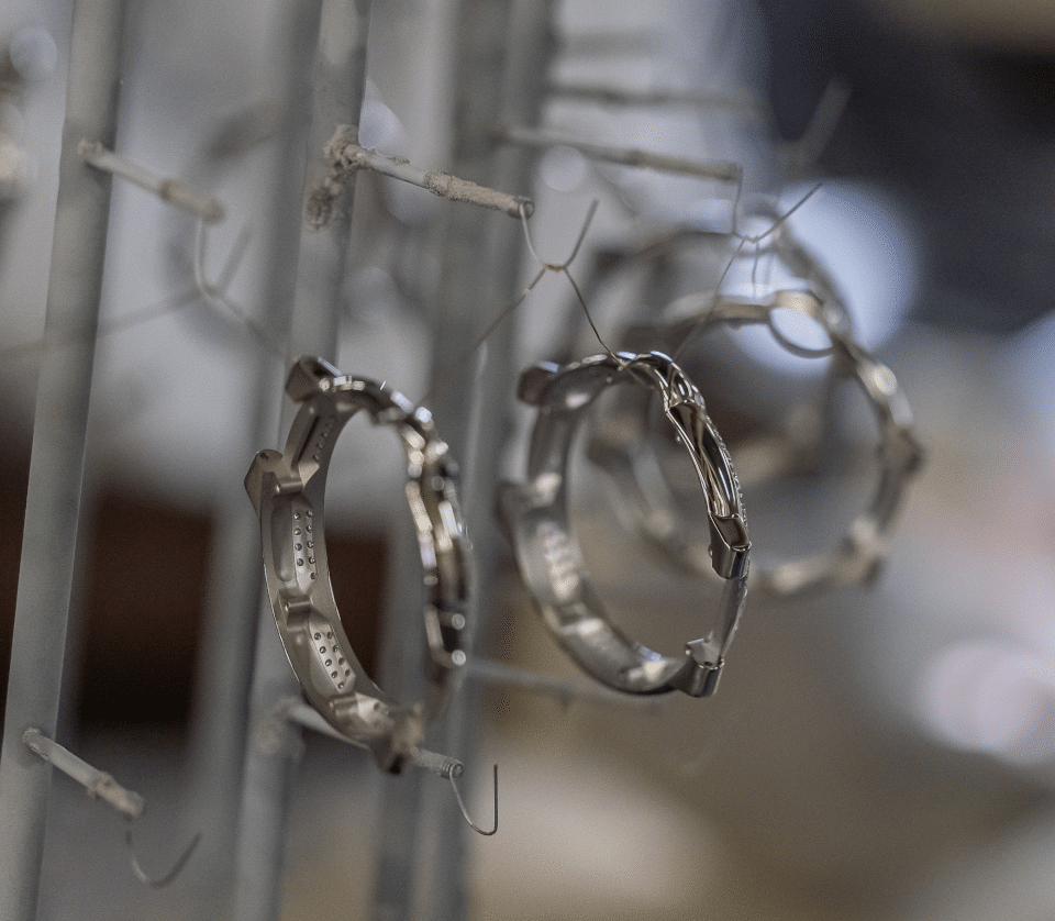 Le traitement de pièces complexes peut inclure des pièces creuses telles que des bracelets, des pièces serties de baguettes, des pièces brutes, des aiguilles pour montres chronographes, des carrures de montres polies et satinées, des travaux à la rodinette et des pièces uniques.